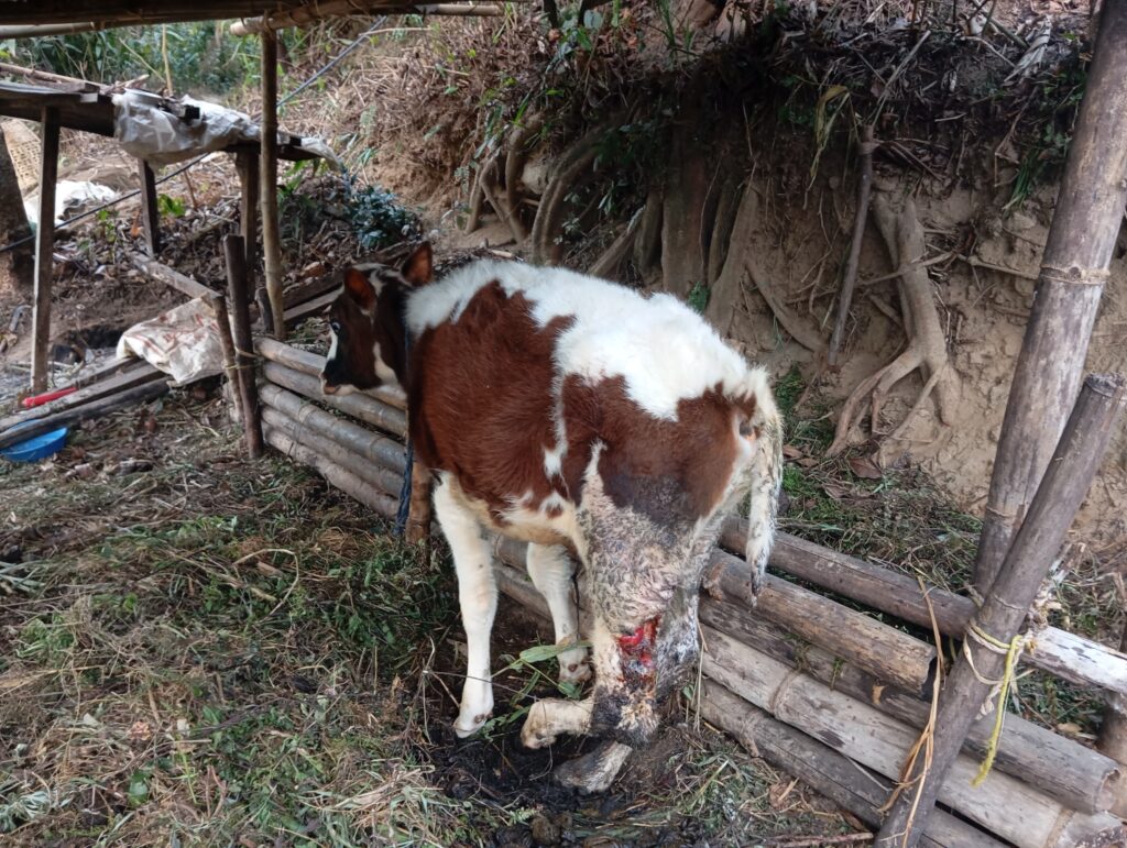 कन्याममा मासुका लागि जिउँदै गोरुको फिला काटियो (भिडियो सहित
