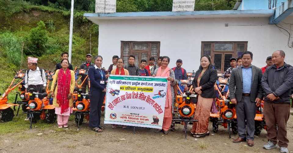 ✍ रोसन काफ्ले इलाम– श्रमशक्ति विदेशिन थालेपछि कृषिमा सहज गराउन माइजोगमाई गाउँपालिकाले यान्त्रिकरणलाई प्राथमिकता दिन थालेको छ । खेतबारी खनजोत र चिया टिपाइमा सहज बनाउन किसानलाई सहयोग गर्ने उद्देश्यले गाउँपालिकाले कृषि विकास शाखा अन्र्तगत किसानहरुलाई हाते ट्याक्टर र चिया टिप्ने मेशिन उपलब्ध गराएको हो । गाउँपालिकाको कृषक यान्त्रिकरण प्रवद्र्धन कार्यक्रम अन्तर्गत २३ जनालाई हाते ट्याक्टर […]